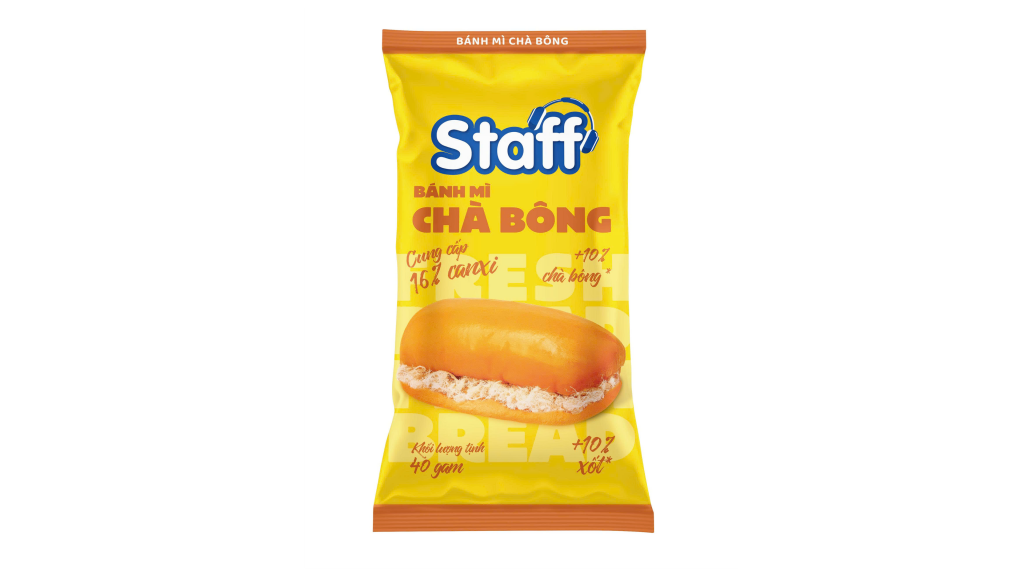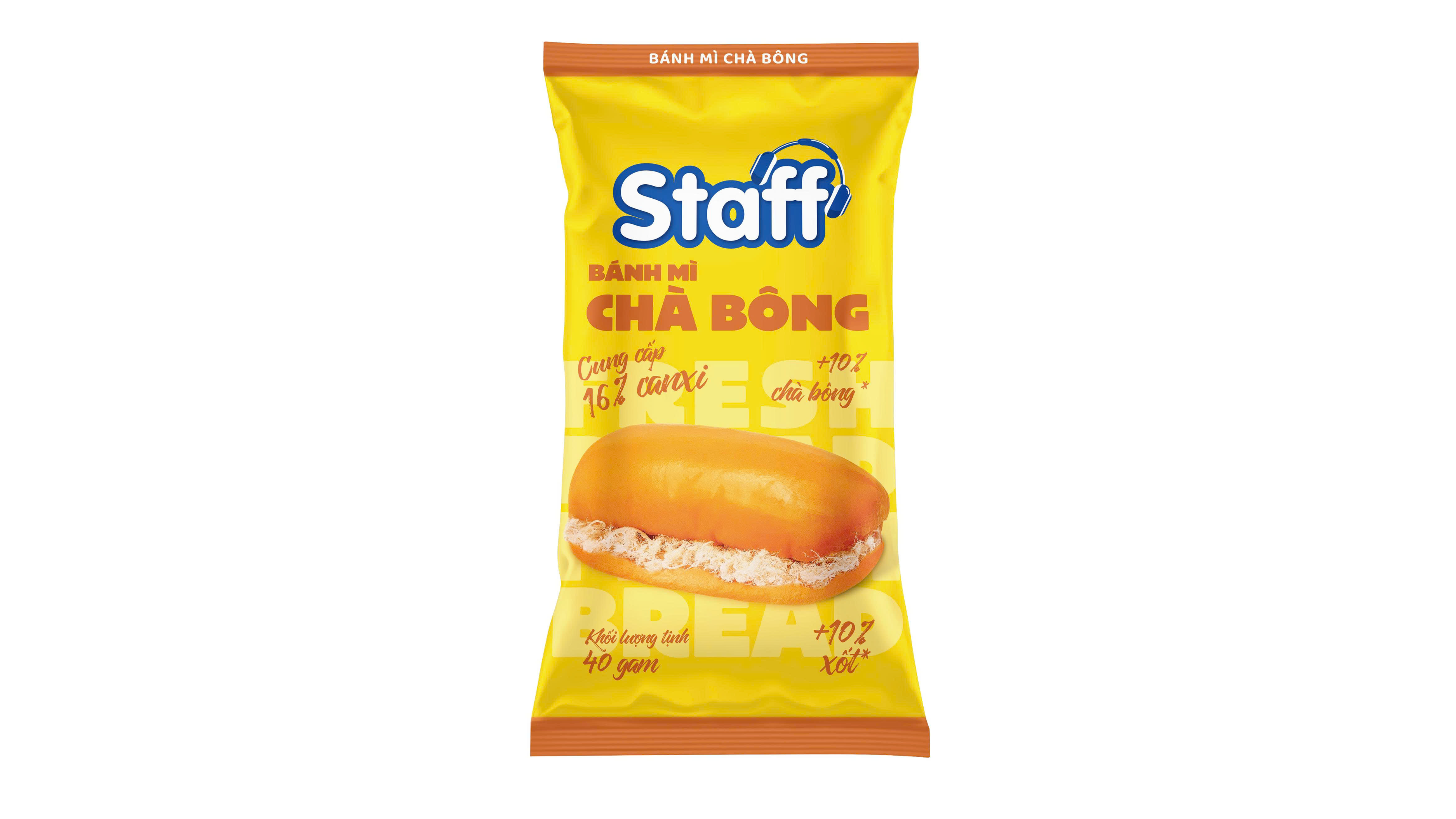 Staff Bánh Mì Chà Bông 40g là sự kết hợp hoàn hảo giữa lớp bánh mì mềm mịn, thơm bơ và nhân chà bông mặn mà hòa quyện cùng sốt đậm đà, tạo nên hương vị hấp dẫn, lôi cuốn ngay từ miếng cắn đầu tiên.